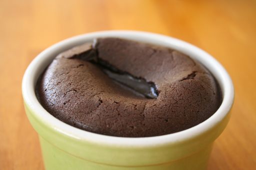 France is well known not only for its cuisine but also for its desserts and pastries. Lately, it seems one of the trendiest dessert in local restaurants is chocolate coulant – a small chocolate cake which has a liquid core that oozes when you cut it. I personally has never tasted a chocolate coulant before as chocolate isn’t one of my favourite flavour (Pierre wouldn’t believe it – how can a woman not like chocolate !). I was however very intrigued by the combination of a solid and liquid cake at the same time, and decided to try it.