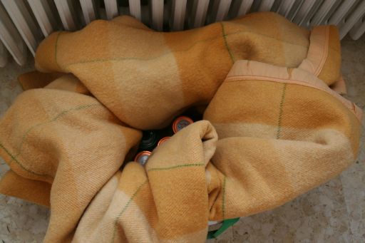 - Place all the jars inside the prepared cool bag/box, fold the blanket in, covering the jars. Cover the box, in my case, I zip it up. 🙂